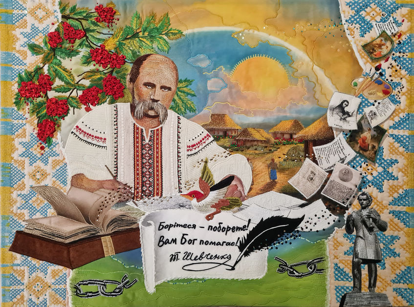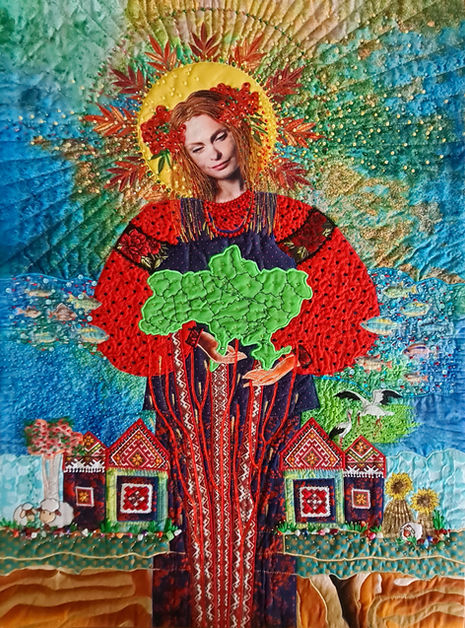 Featuring Ukrainian textile and mixed media art by Maryna Lukach